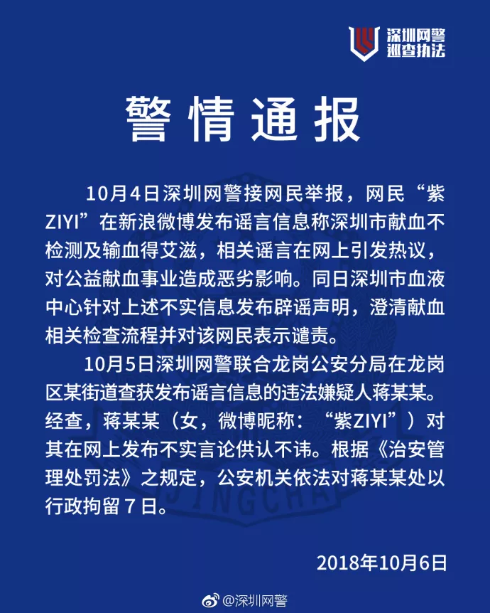 深圳是國內(nèi)最早開展無償獻血的城市,公益獻血事業(yè)救助大量病患,深圳網(wǎng)警在此號召大家積極參與公益獻血。造謠違法,獻血光榮。