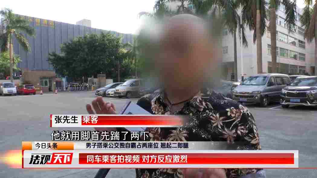 畫面里這位乘客,看起來睡眠質量不錯,上了公交車是倒頭就睡,不過,這姿勢可是很不雅,只見這位乘客獨自霸占了兩個座位,一只腳踩在座位上,另外一只腳還不時得靠在椅背上搖晃著,這一幕,可把同車里的張先生給氣壞了。
