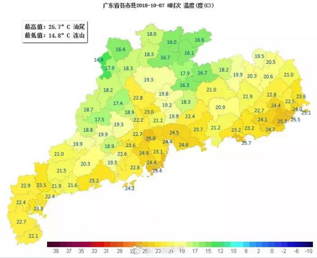 過程日平均氣溫:西北部市縣將下降3-5 ℃左右,其余市縣將下降2-4 ℃左右。粵北和中部偏北市縣10日開始將有3-5天寒露風(fēng)天氣。