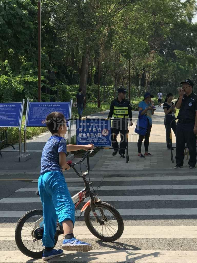 由于周六日深圳灣公園不讓進,而從蛇口新街到濱海沙河西立交橋這段路在公園內(nèi),該網(wǎng)友只能改從望海路騎至濱海沙河西立交,當準備由濱海沙河西立交騎行到深南沙河西立交時,又被告知這條騎行道同樣在深圳灣公園管轄范圍內(nèi),不準進。最后,網(wǎng)友只能帶著孩子沿沙河西路極其狹窄且危險的小道騎行到深南大道,再接著騎到深南沙河西,最終才到達大沙河公園(大沙河?xùn)|側(cè)的沿岸)。
