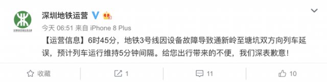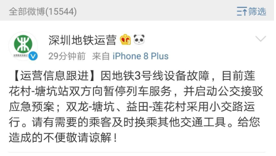 9日上午,深圳地鐵3號線發(fā)生故障致列車停運