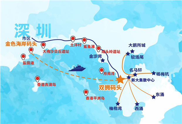 “鹽田金色海岸碼頭-南澳雙擁碼頭”航線示意圖(圖片由深圳航運集團(tuán)提供)