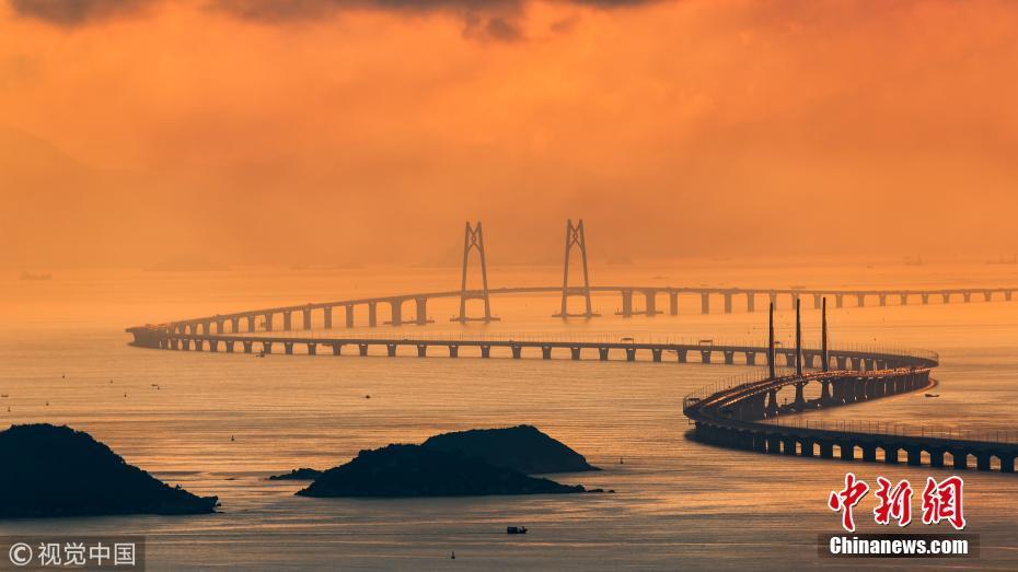 “超級(jí)工程”港珠澳大橋?qū)⒂?4日上午9時(shí)正式通車,一波美圖先睹為快。黃昆震攝圖片來源:視覺中國(guó)