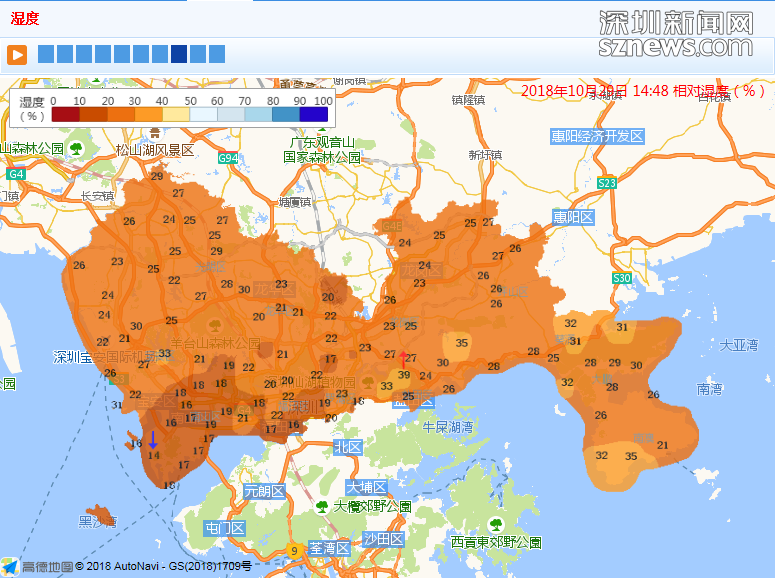市氣象局監(jiān)測相對濕度(數(shù)據(jù)更新于10月29日14時48分)