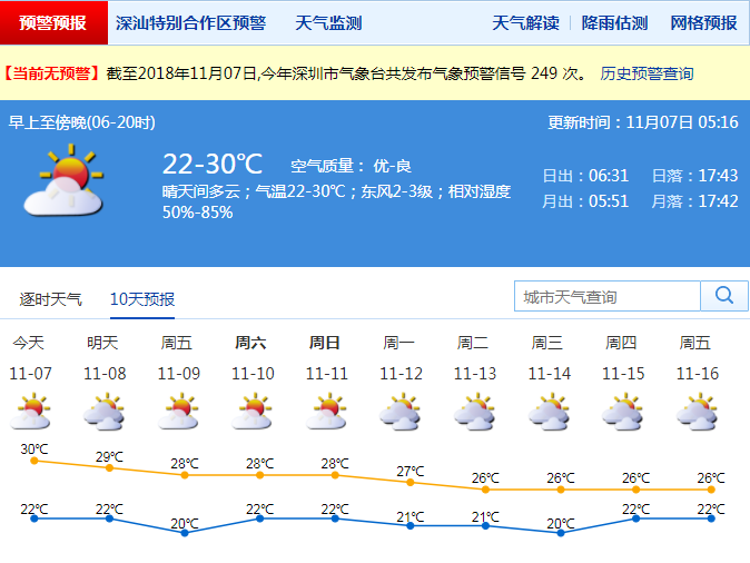 市氣象局發(fā)布未來(lái)十天天氣預(yù)報(bào)(數(shù)據(jù)更新于11月07日05時(shí)16分)