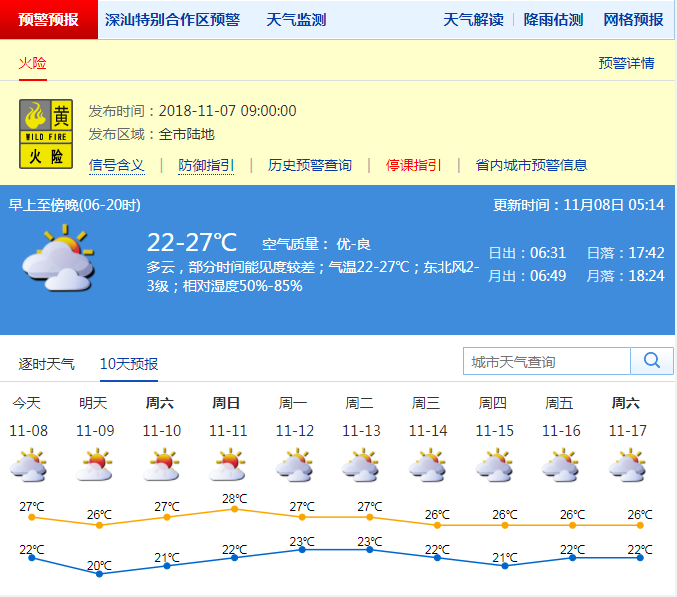深圳新聞網(wǎng)訊 昨日立冬,可鵬城中午最高氣溫升到29℃,陽光強(qiáng)烈,一時(shí)間不知道是過冬還是過夏。市氣象臺(tái)預(yù)測,未來幾天仍以多云間晴天為主,早晚有輕霧,氣溫小幅波動(dòng),最高氣溫在27℃左右。