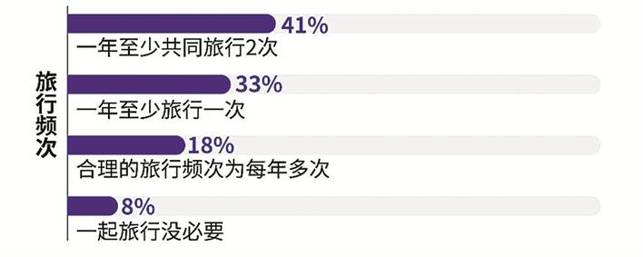 而在共同旅行方面,41%認為一年至少共同旅行兩次,33%要求一年至少旅行一次,18%認為合理的旅行頻次為每年多次,僅有8%認為一起旅行沒必要。由此可見戀愛約會的成本也不可忽略。