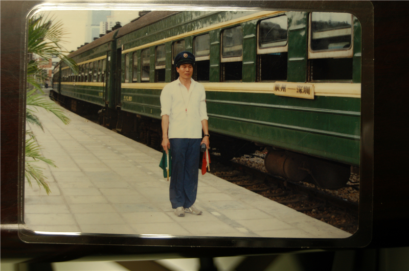 90年代,廣深線開行的列車為綠皮火車。圖中站內(nèi)指揮員引導列車