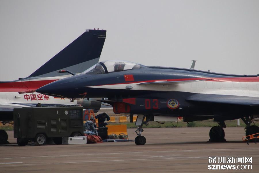 完成飛行表演,在停機坪上的殲-10。