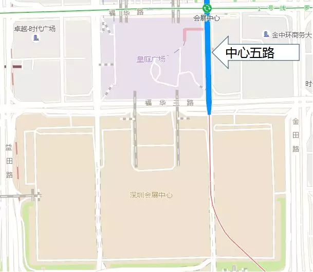 高交會期間,在福華三路北側(cè)設(shè)大巴停靠站,南側(cè)設(shè)的士上落站,公交大巴從金田路進入福華三路并在站點上下客,的士車輛均由益田路方向駛?cè)?,自金田路駛出并在指定站點排隊候客。