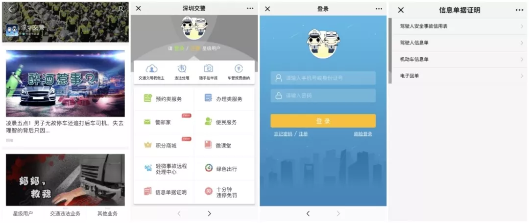 搜索生活號“深圳交警” →登錄星級用戶 →選擇“信息單據(jù)證明” →選擇需要打印的證明類型