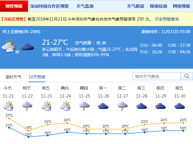 今晚中等強(qiáng)度冷空氣開始影響深圳,明天最低氣溫降至15℃