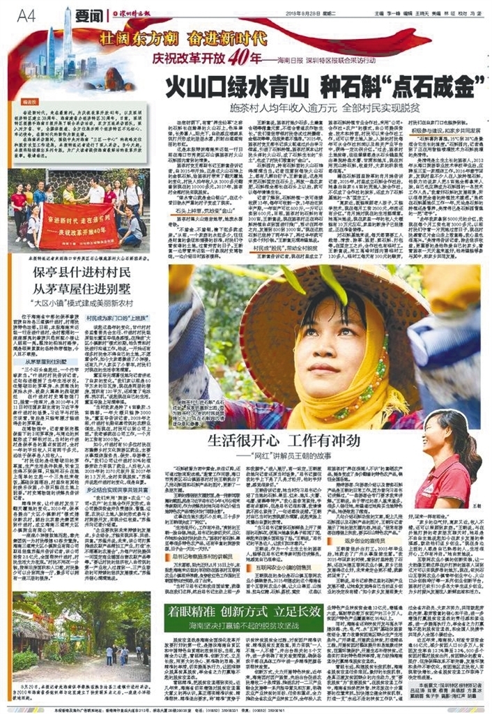 8月28日,《深圳特區(qū)報(bào)》推出了“壯闊東方潮奮進(jìn)新時(shí)代”慶祝改革開放40年——《海南日報(bào)》《深圳特區(qū)報(bào)》聯(lián)合采訪行動(dòng)首期報(bào)道。首期報(bào)道通過通訊、評論等形式,以點(diǎn)帶面,展示了海南全力打贏脫貧攻堅(jiān)戰(zhàn)取得的成就。