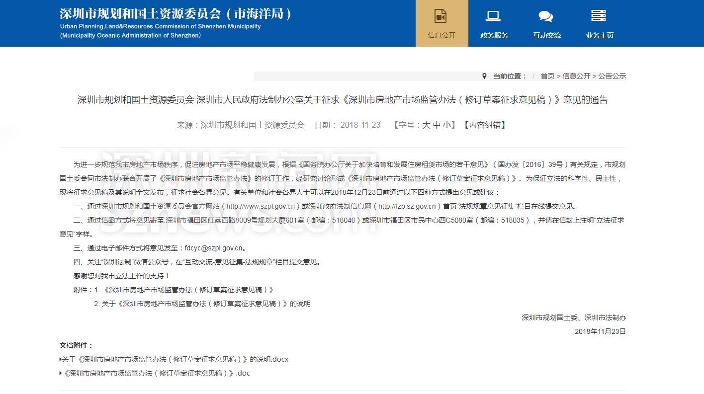 據(jù)了解,深圳市規(guī)土委會同市法制辦聯(lián)合開展了《深圳市房地產市場監(jiān)管辦法》的修訂工作,形成《深圳市房地產市場監(jiān)管辦法(修訂草案征求意見稿)》(以下簡稱《辦法意見稿》)。記者注意到,此次修訂的大背景是落實國家“房住不炒”的目標要求,加上國務院取消了房地產經紀人資格管理制度、深圳市取消了房地產行業(yè)年檢制度而實行年報制度,原監(jiān)管辦法自2010年以來,已實施近8年,相關規(guī)定已不合時宜,亟需結合新的形勢和要求進行修訂完善。