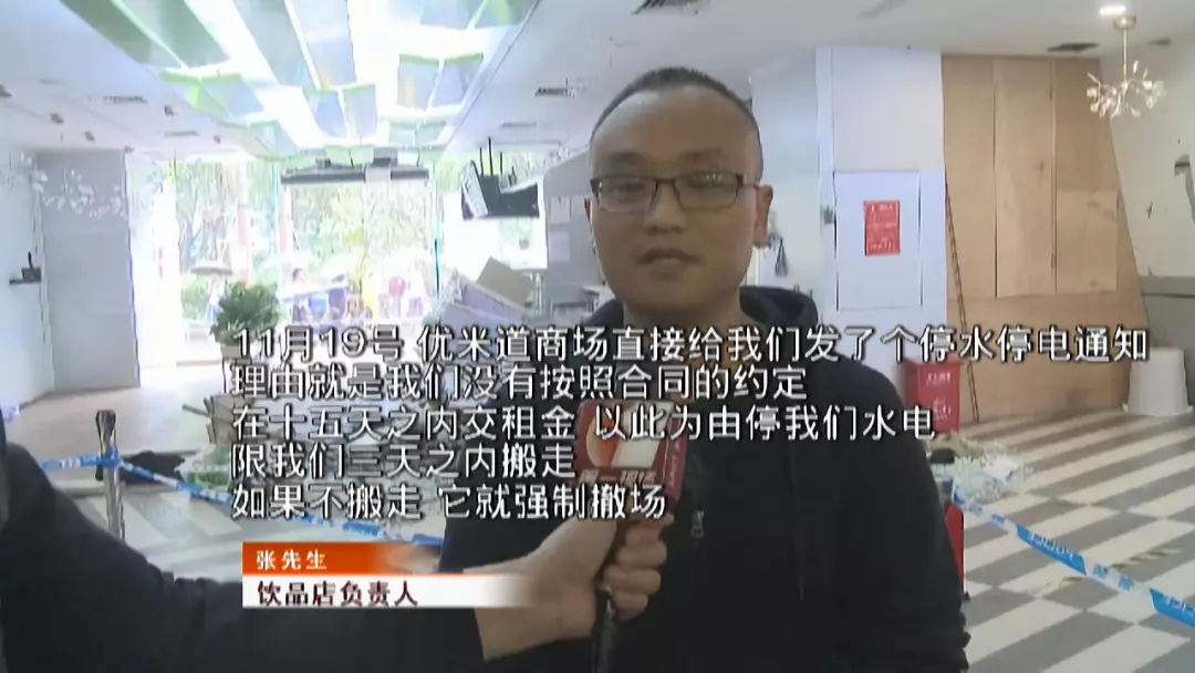 記者在飲品店墻上看到了一則通知,優(yōu)米道商場以飲品店拖欠租金為由與其解約,限飲品店在11月23日15點前自行離場,到期不按時騰空鋪位,飲品店將要承擔由此產(chǎn)生的一切損失和后果。