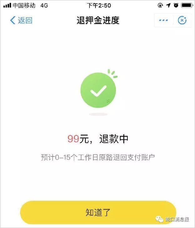 ▲ofo共享單車退押金頁(yè)面
