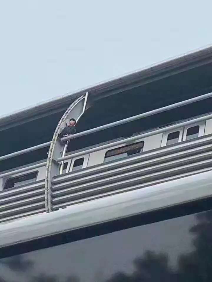 闖入軌行區(qū)后,爬上了高架車站頂棚