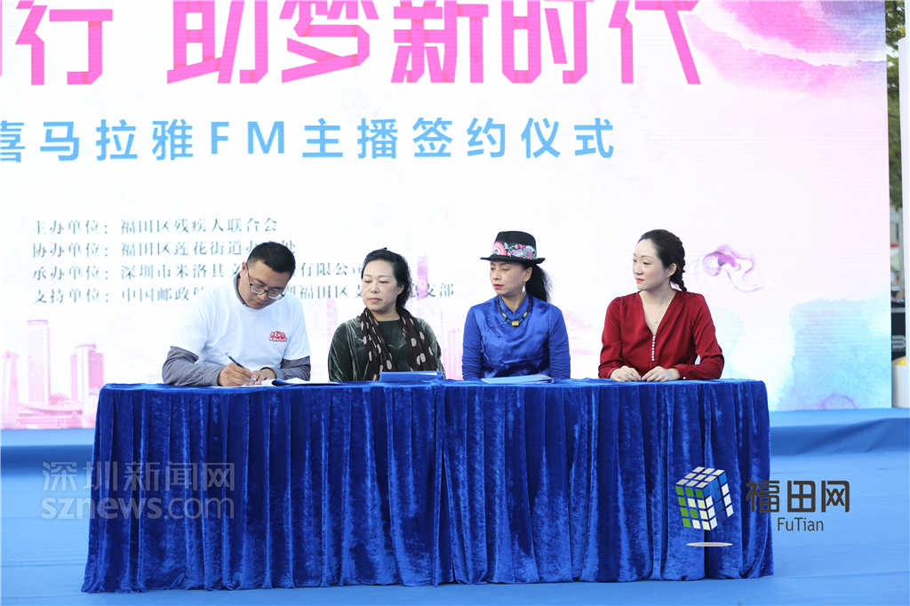喜馬拉雅FM相關(guān)負責人現(xiàn)場與福田殘疾人網(wǎng)絡(luò)主播進行簽約。