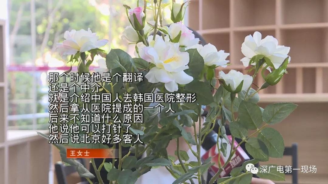 王女士說(shuō),認(rèn)識(shí)這名韓國(guó)男子后,對(duì)方多次給她打了整容針,打針的地方基本都是羅湖一家星級(jí)酒店的客房里面。