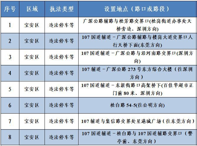 深圳新聞網(wǎng)12月10日訊(記者 何暢)據(jù)“深圳交警”微信公眾號(hào)消息,深圳56套“電子警察”新上線(xiàn),其中46套專(zhuān)門(mén)查處違法停車(chē),4套用于查處泥頭車(chē)違反禁行限行規(guī)定,6套用于查處沖紅燈、逆行、進(jìn)入導(dǎo)向車(chē)道變更車(chē)道等違法行為。56套“電子警察”具體分布位置如下: