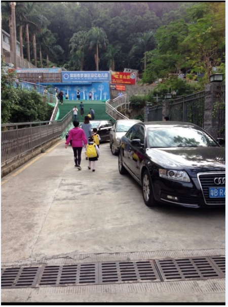 據(jù)該網(wǎng)友反映,通往景億幼兒園大門的道路只有上述提及的那兩條車道,一條被用來停車,而另一條則滿是排隊從景億山莊車庫轉(zhuǎn)彎出來的機動車?!岸紱]有路可以走了”該網(wǎng)友在帖文中表示,小孩和來接送的家長只能從機動車之間穿過,太不安全了。隨后,該網(wǎng)友還質(zhì)疑:事關(guān)3-5歲幼兒生命安全,為什么沒人管?