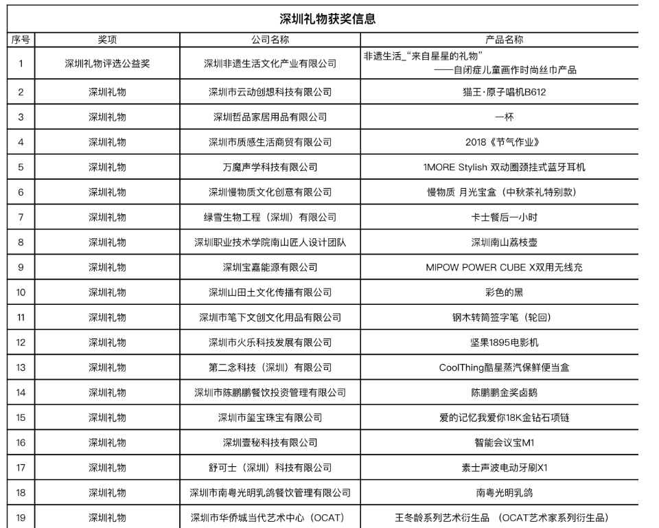 深圳新聞網(wǎng)12月13日訊(記者 陳婕)13日下午,2018年第三屆“深圳禮物”頒獎典禮在歡樂海岸舉行,一一揭曉40件深圳禮物及1件深圳禮物評選公益獎。