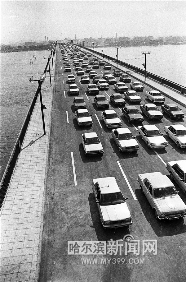1986年9月20日,并排5輛轎車通過松花江公路大橋。當日,總投資2.15億元的哈爾濱松花江公路大橋建成通車。該工程是“六五”期間國家重點建設(shè)工程之一。大橋全長1588米,其中主橋1198米;橋面凈寬24米,行車道19米,人行道兩邊各2.5米,是全國千米以上公路大橋最寬的。