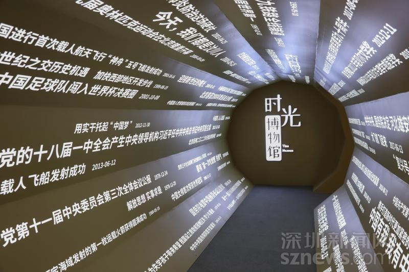 進入時光博物館,最先通過的是由40年來《人民日報》各個時期重點新聞報道的標題聚合而成的時光隧道