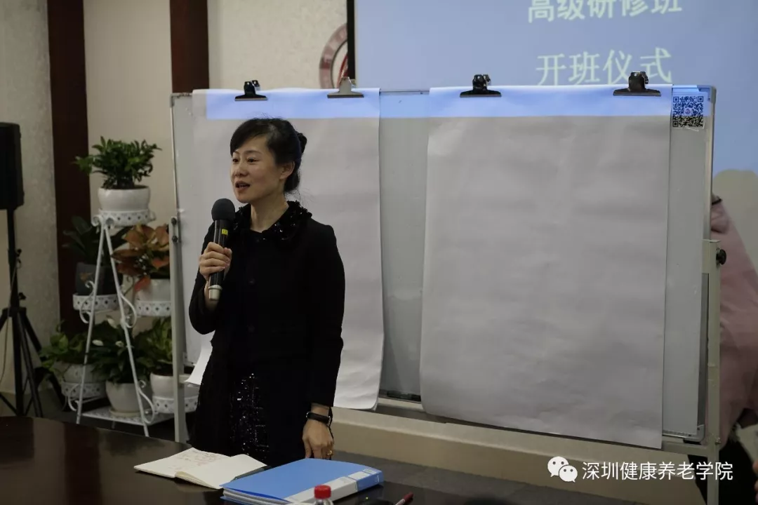 溫希東代表學(xué)校在開班儀式上致辭。他向全體學(xué)員表示了熱烈的歡迎,他向參加培訓(xùn)的學(xué)員介紹了深圳職業(yè)技術(shù)學(xué)院的辦學(xué)情況,他表示,深圳健康養(yǎng)老學(xué)院是深圳職業(yè)技術(shù)學(xué)院創(chuàng)新社會(huì)服務(wù)模式,與深圳市民政局共同建設(shè)的一所專業(yè)養(yǎng)老人才學(xué)院。他希望,培訓(xùn)班學(xué)員在這次定制化的高端培訓(xùn)中加強(qiáng)交流,共同促進(jìn)養(yǎng)老行業(yè)發(fā)展。