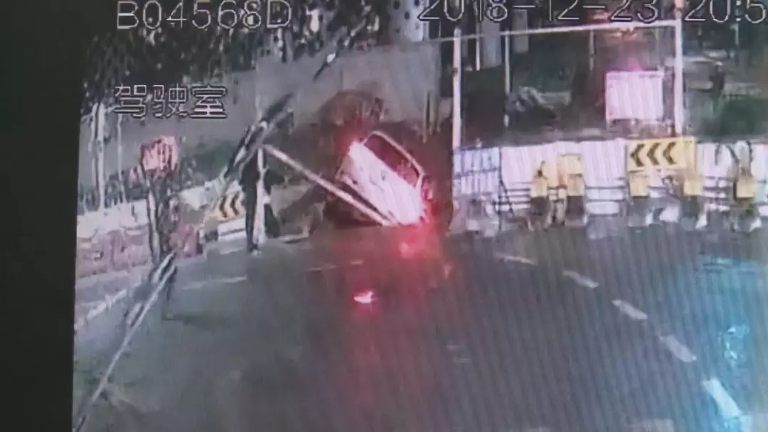 深圳一男子開車搞“小動作”,一頭沖進工地車懸半空!