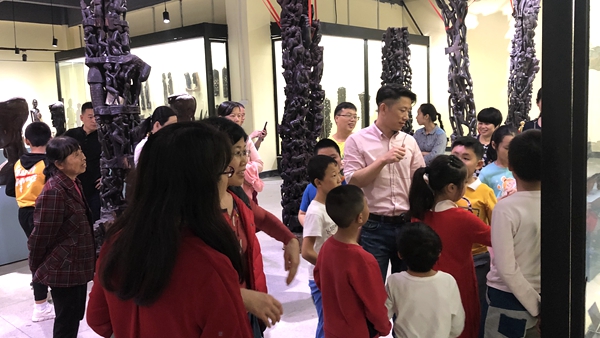 也許是被熱情的笑容和鼓舞所感染,天真活潑的小朋友們一到現(xiàn)場便與非洲大哥哥大姐姐們迅速的打成一片,毫無距離感。在非洲哥哥姐姐們的鼓聲引領(lǐng)下,同學(xué)們首先來到非洲文化博物館,由于大家都是第一次接觸非洲藝術(shù)品,哇哇哇的贊嘆聲此起彼伏,博物館工作人員瞬間被大家緊緊包圍,對各種藝術(shù)品提出了無數(shù)個五花八門的問題,真正成了“十萬個為什么”“案發(fā)現(xiàn)場”?!榜R賽人為什么住牛糞房子啊?”“木頭為什么是黑色的啊”“坐了酋長椅是不是就可以做酋長了?”……由于同學(xué)們第一次這么近距離接觸非洲文化,實在是太好奇太熱情,與各種藝術(shù)品親密接觸拍照、坐酋長椅體驗“做酋長”的感覺、甚至工作人員也“網(wǎng)開一面”讓大家騎在大象和獅子木雕上盡情玩耍,導(dǎo)致原本計劃半小時的參觀時間足足一個半小時才結(jié)束。