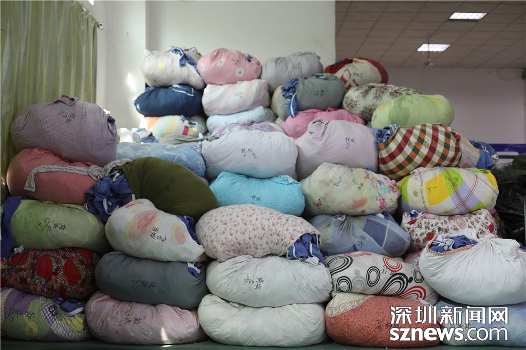 無法捐贈(zèng)的衣物已打包好等待運(yùn)走處理