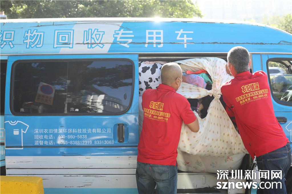 車停人下,工作人員打開織物回收箱的鎖扣后,將平時回收的床單鋪在取衣口前,將市民投入回收箱的衣物放置在床單上。放置完成后,工作人員拍照打卡,并做好記錄,然后打好包后便塞入車中。據(jù)觀察,車輛僅前排可坐人,包含司機在內(nèi)只有兩個座椅,所有后座皆為衣物放置區(qū)域。
