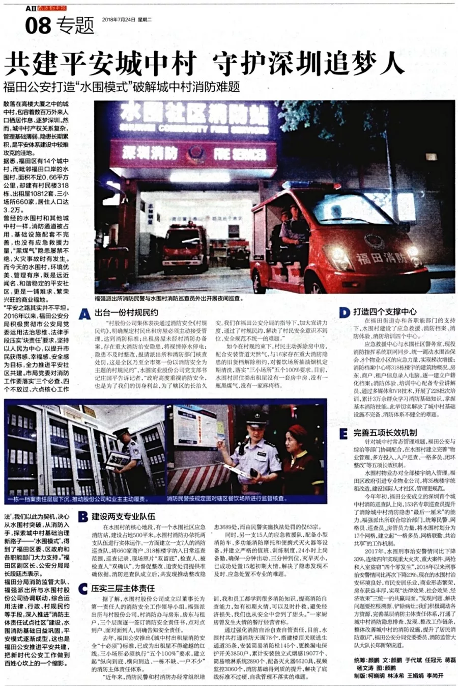 ★★“水圍模式”,基于問題導(dǎo)向,源于基層實(shí)踐,成于共治共享,福田警方通過“消防開路、治安同行,綜治固基、網(wǎng)格聯(lián)勤”,有效破解了城中村消防治安難題,為復(fù)雜區(qū)域基礎(chǔ)治理探索出一把行之有效的“金鑰匙”。