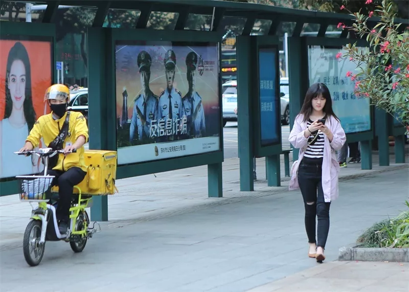 為擴(kuò)大反詐騙宣傳力度,福田警方充分發(fā)揮媒體效應(yīng),邀請深圳電視臺著名主持人為福田反信息詐騙宣傳代言,拍攝反詐案例回顧、反詐宣傳公益片等,在深圳各電視頻道、地鐵、公交、大型商圈LED屏幕、社區(qū)充電站廣告屏及歌舞、桑拿、酒店等場所移動電視滾動播出,隨時隨地提醒市民防范。同時,福田警方還與深圳地鐵媒體公司合作,在地鐵站設(shè)置反詐騙宣傳框架告144 塊,在轄區(qū)30個重點公交站臺告牌投放宣傳海報,在“福田警察”、“福田反詐騙”微信公眾號推送防范文章190篇。