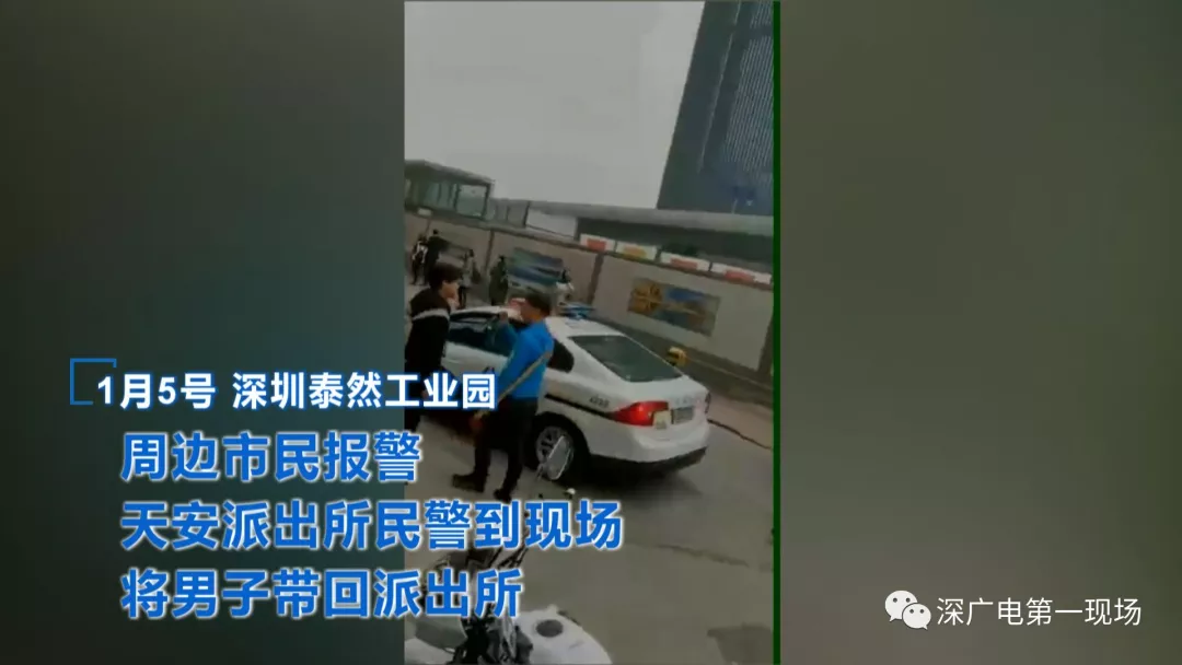 1月5號下午三點,在泰然工業(yè)區(qū)203棟附近,一名藍衣男子手拿一把管制器具,與另外兩名黑衣男子發(fā)生口角。