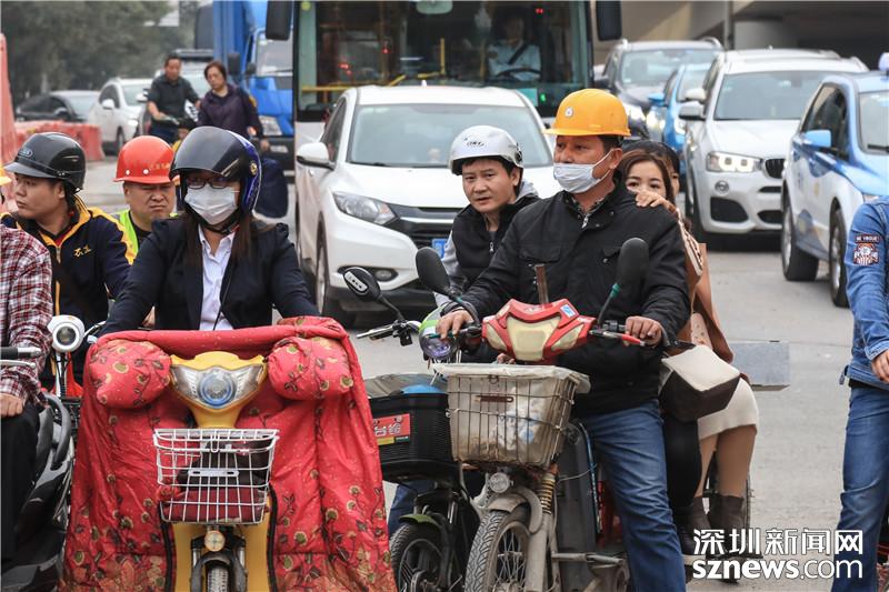 由于寶安大道相關路段施工,不少市民戴口罩出行