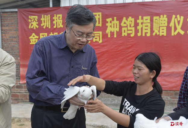 根據(jù)報(bào)業(yè)集團(tuán)“因戶(hù)制宜一戶(hù)一策”“一個(gè)黨支部結(jié)對(duì)一戶(hù)貧困戶(hù)”的安排,鐘仿明選擇養(yǎng)鴿脫貧,兩年多來(lái),集團(tuán)金風(fēng)帆物業(yè)公司共計(jì)為他送來(lái)四批480對(duì)種鴿,還請(qǐng)來(lái)深圳光明農(nóng)場(chǎng)的技術(shù)員,對(duì)他進(jìn)行技術(shù)培訓(xùn)。“480對(duì)種鴿全部成活!”1月20日下午,看到親自來(lái)送種鴿的陳寅等報(bào)業(yè)集團(tuán)領(lǐng)導(dǎo),鐘仿明拿出一面錦旗,非常激動(dòng)地說(shuō):“感謝黨的好政策,感謝深圳報(bào)業(yè)集團(tuán)的真心幫扶!”