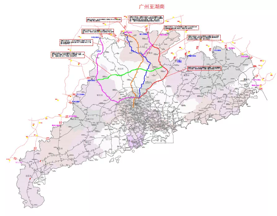 從廣州出發(fā),通往湖南、廣西東北部、江西、福建、廣西北部灣及海南方向的出行指引: