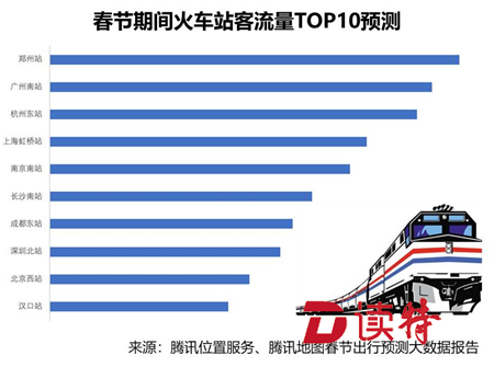 鄭州作為中國鐵路的中心,當仁不讓地成為全國最熱門的火車站。而廣州南站、杭州東站、上海虹橋站預計分列二、三、四位,基本集中在人流密集的一線城市及區(qū)域性中心城市。