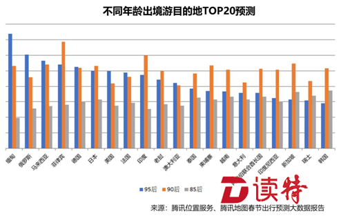 根據(jù)年齡劃分,18歲以下青少年最喜歡前往東南亞國家,而60歲以上老年人最青睞的是歐美發(fā)達國家。進一步研究發(fā)現(xiàn),85后最愛去的國家是韓國、新加坡、瑞士、阿聯(lián)酋、越南,涵蓋東亞、東南亞和歐洲,90后最愛去的國家是菲律賓、印度、新加坡、馬來西亞、柬埔寨,全部在東南亞地區(qū),95后最愛去的國家是緬甸、俄羅斯、馬來西亞、菲律賓、德國,涵蓋東南亞和歐洲。