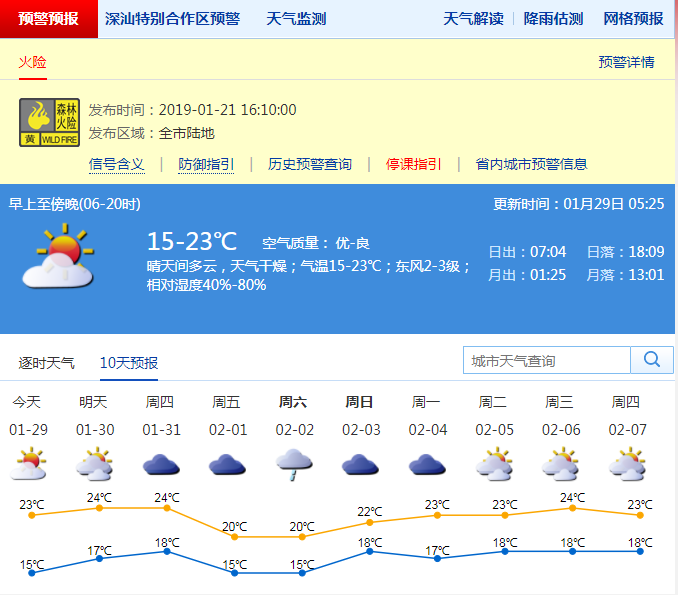 氣象局提醒市民,未來(lái)三天深圳晴朗干燥,是春節(jié)前大掃除和洗曬的好時(shí)機(jī);最近空氣持續(xù)干燥,森林火險(xiǎn)黃色預(yù)警生效中,市民需注意用火安全,外出游玩不帶火種上山;寒冷天氣需嚴(yán)防一氧化碳中毒,浴室應(yīng)注意通風(fēng)良好,注意燃?xì)鉄崴魇褂冒踩瑖?yán)禁使用直排式和煙道式熱水器。