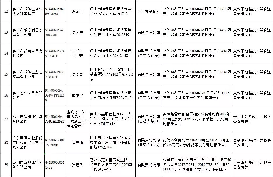 深圳新聞網(wǎng)2019年1月29日訊 (記者 劉婷)據(jù)廣東發(fā)布消息,省人社廳近日公布,2019年第一批用人單位重大勞動(dòng)保障違法行為名單。到底是哪些企業(yè)在惡意欠薪?這些“老賴”企業(yè)的營(yíng)業(yè)執(zhí)照、地址、法人等等超全信息都在這!