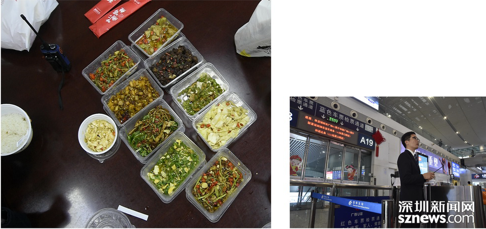 春運(yùn)第一天,人流如織。從下午2點(diǎn)半上班開始,聶新強(qiáng)忙了5個(gè)鐘頭,安全送走大約20萬人。晚上七點(diǎn)半,在各閘機(jī)口頂替了五位同事吃晚飯之后,聶新強(qiáng)終于吃上了“豪華”外賣“快餐”,“豪”的是一人獨(dú)享八人份,“快”的是只用了10分鐘不到就結(jié)束了戰(zhàn)斗。