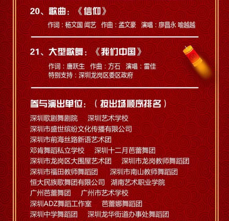 “擁抱春天——2019中央廣播電視總臺(tái)春節(jié)聯(lián)歡晚會(huì)深圳分會(huì)場節(jié)目展播暨深圳春節(jié)聯(lián)歡晚會(huì)”(以下簡稱“深圳春晚”)將于明晚21:00在央視綜藝頻道和深圳衛(wèi)視同步播出。