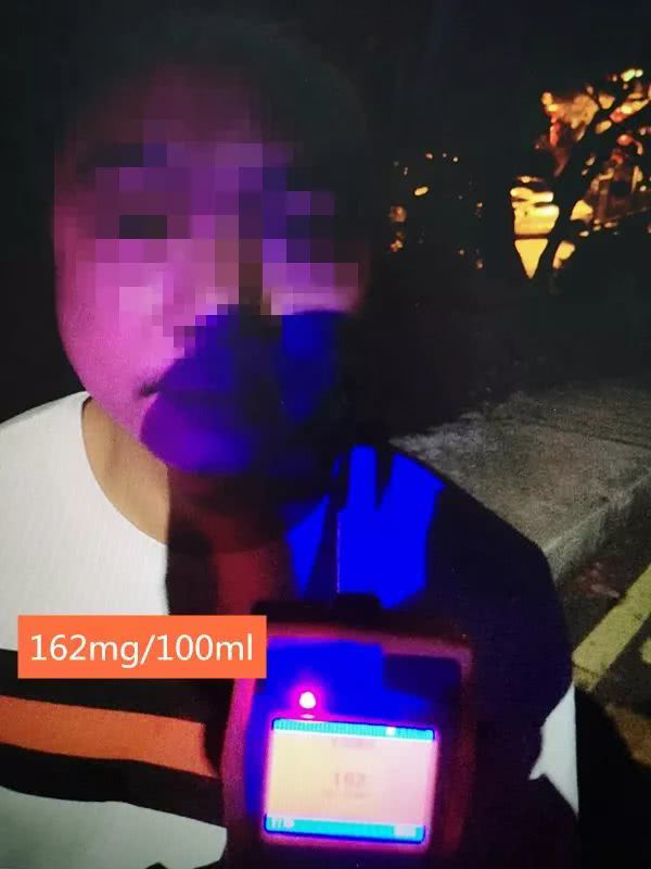 黑色小車駕駛人廖某渾身酒氣,經現場呼氣式酒精檢測結果為162mg/100ml!