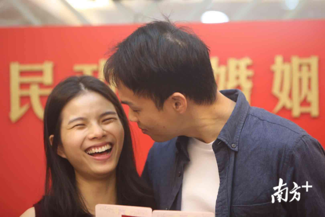 我們結(jié)婚啦!2月14日情人節(jié),一大早,深圳市羅湖區(qū)民政局婚姻登記處迎來許多對(duì)新人前來登記結(jié)婚。頒發(fā)證件、許下諾言、親密相吻……一對(duì)接一對(duì)的新人完成莊重的儀式,留下甜蜜蜜的合影,浪漫的氣息彌漫整個(gè)空間。南方日?qǐng)?bào)記者朱洪波攝影報(bào)道