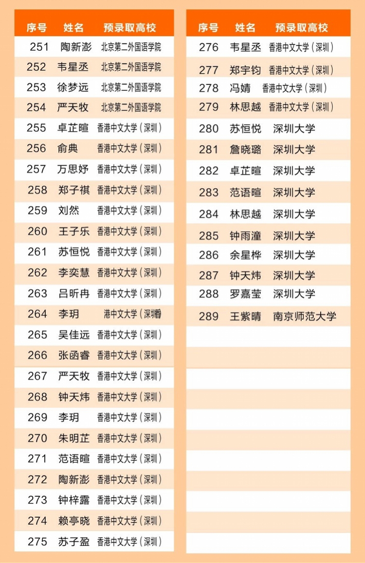 深圳晚報2019年02月17日訊 2月16日,記者從深圳外國語學校獲悉,該校2019年保送創(chuàng)紀錄。截至目前,該校外語書院126人收獲289份預錄取通知,其中北京大學、清華大學保送9人;北京外國語大學、上海外國語大學保送74人;香港中文大學(深圳)25人、華南理工大學31人……