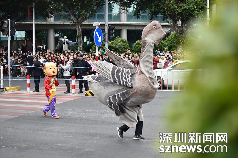 汕頭市非物質(zhì)文化遺產(chǎn)項(xiàng)目雙咬鵝,由演員穿上鵝的服裝進(jìn)行展演