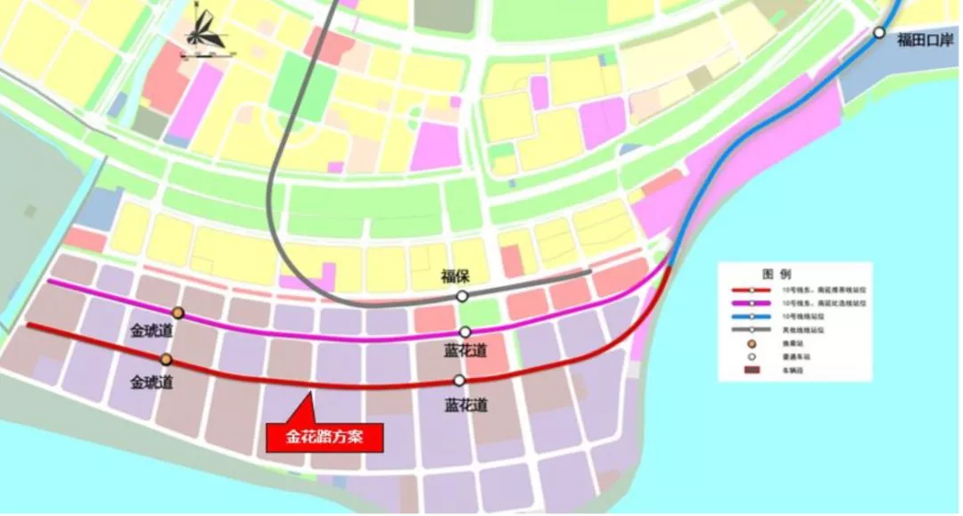 10號(hào)線南延線路起自在建10號(hào)線福田口岸站,向西南敷設(shè),以金花路和金葵路交叉口為終點(diǎn)。線路全長(zhǎng)約3.0公里,采用地下敷設(shè)。